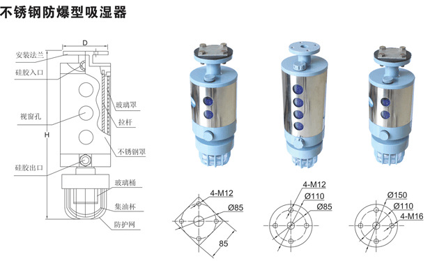 按照(zhao)連接法(fa)蘭分:三(sān)孔(圓形(xíng))和四孔(kǒng)(方形)吸(xī)濕器。