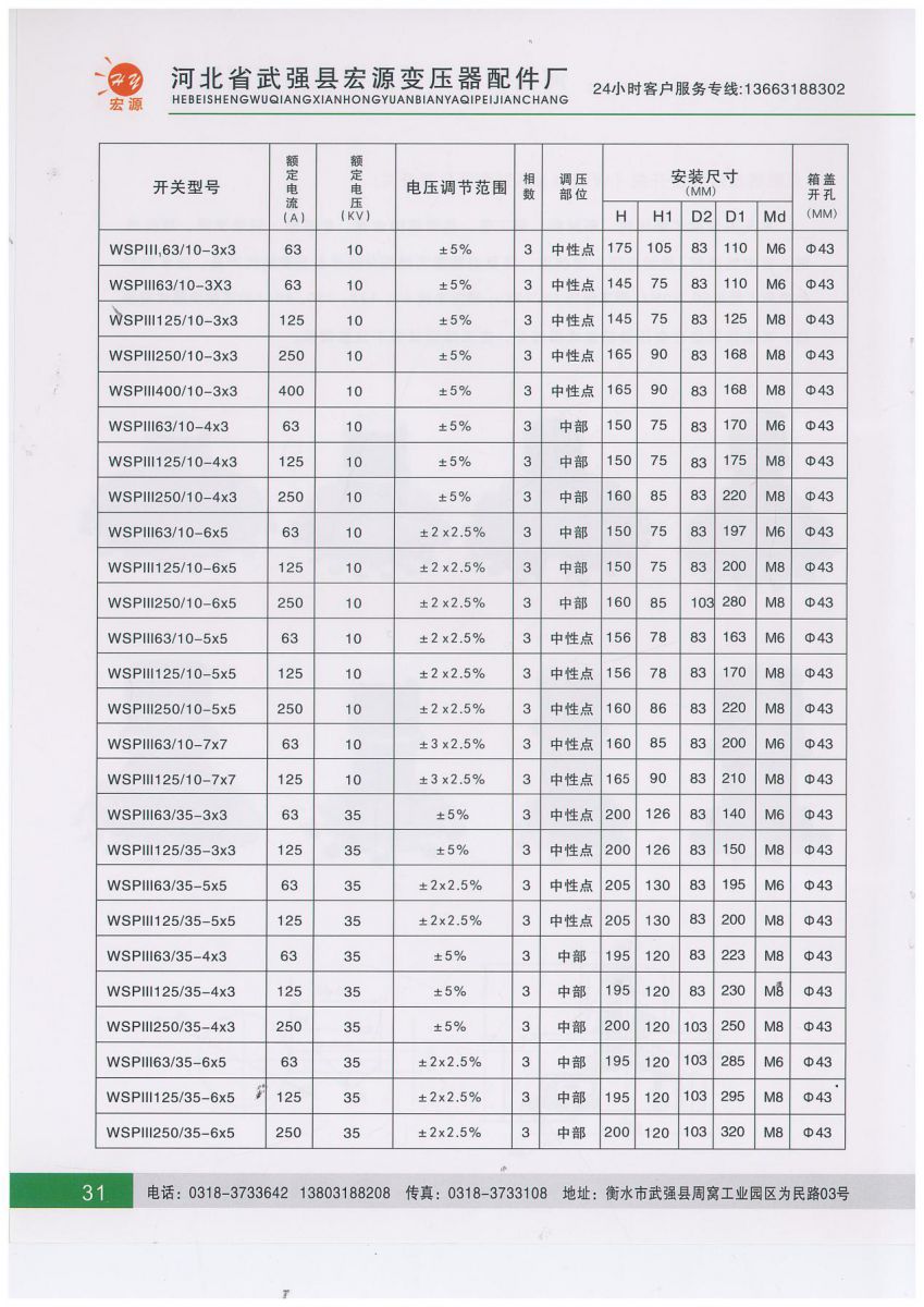 該(gāi)系列産(chǎn)品适用(yong)于頻率(lǜ)50、60Hz、額定電(dian)壓10、35Kv;額定(ding)電流63、125、250、400A的(de)三相油(you)浸式變(bian)壓器,可(ke)直接固(gù)定在變(bian)壓器箱(xiāng)蓋或箱(xiāng)壁處,在(zài)無勵磁(ci)狀态下(xià)分接調(diao)換